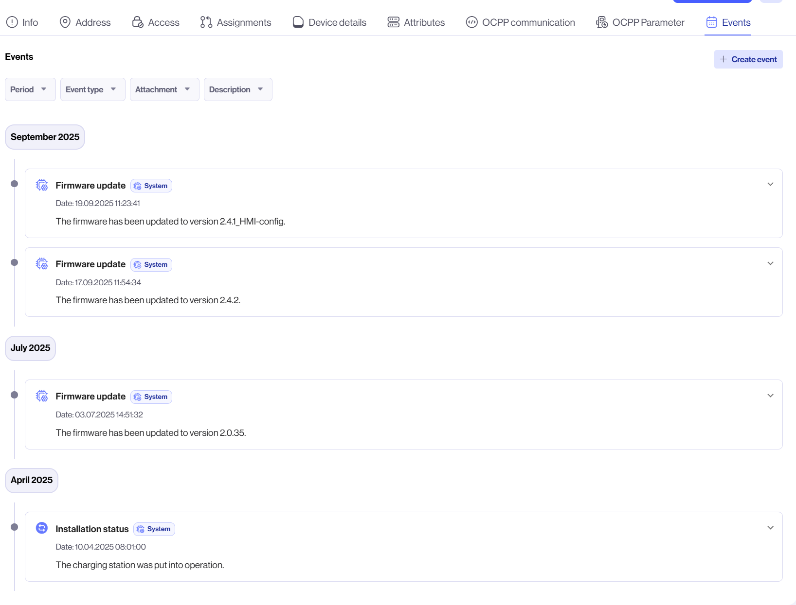 Die Notizfunktion wurde durch das Events-Log ersetzt. Hier können auch manuelle Einträge für z.B. Wartung inkl. Dateianhängen erstellt werden: